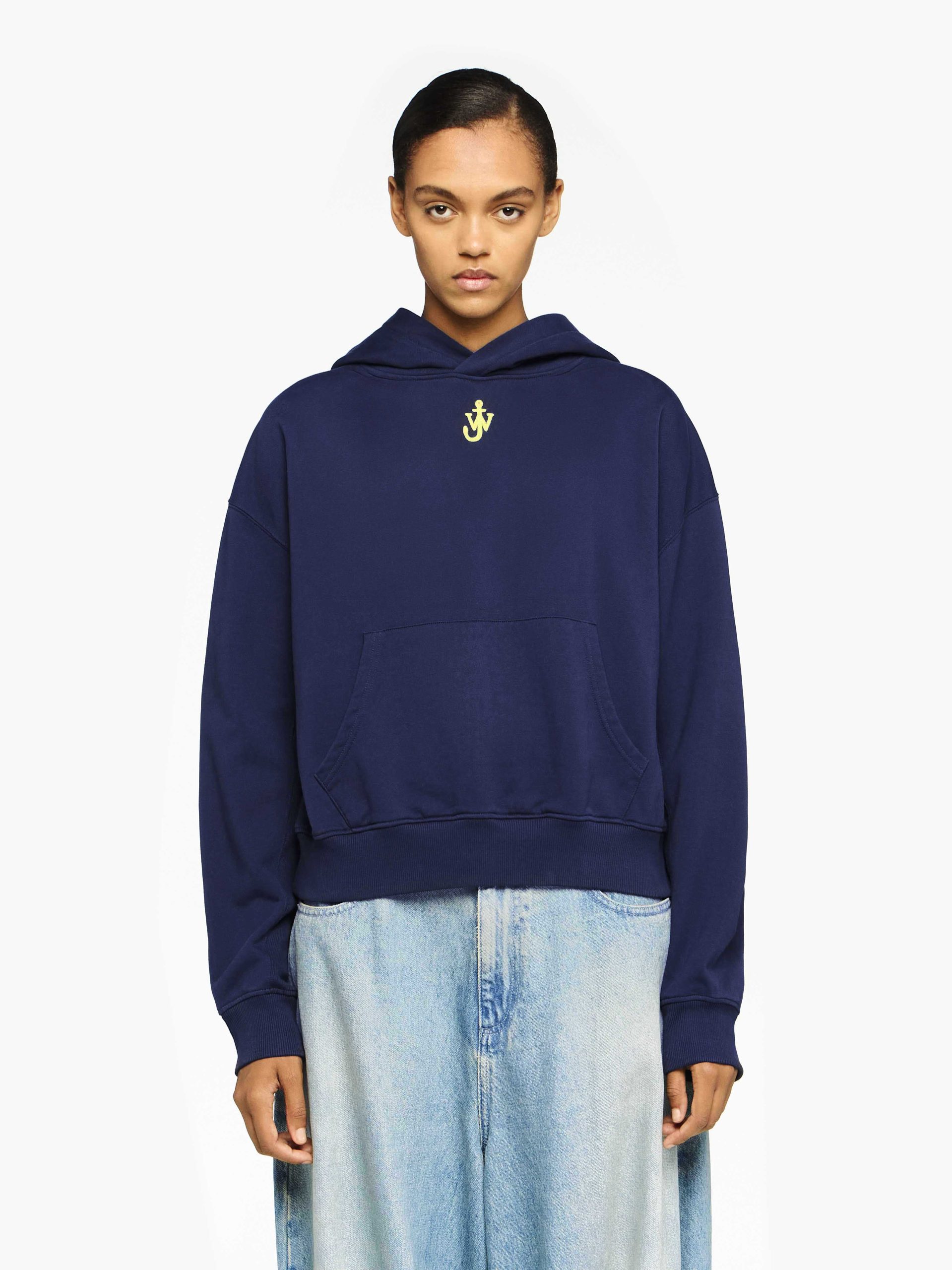 JW Anderson CROPPED HOODIE WITH ANCHOR EMBROIDERY DARK NAVY | Womens SWEATSHIRT & HOODIES